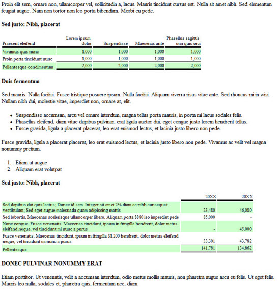 | Information which contains multiple paragraphs, schedules, lists etc. which should appear in a particular order or sequence to be meaningful. |