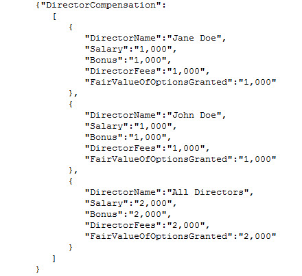 | Variation of text block. Same information contained in the simple compound fact expressed using the JSON syntax. |