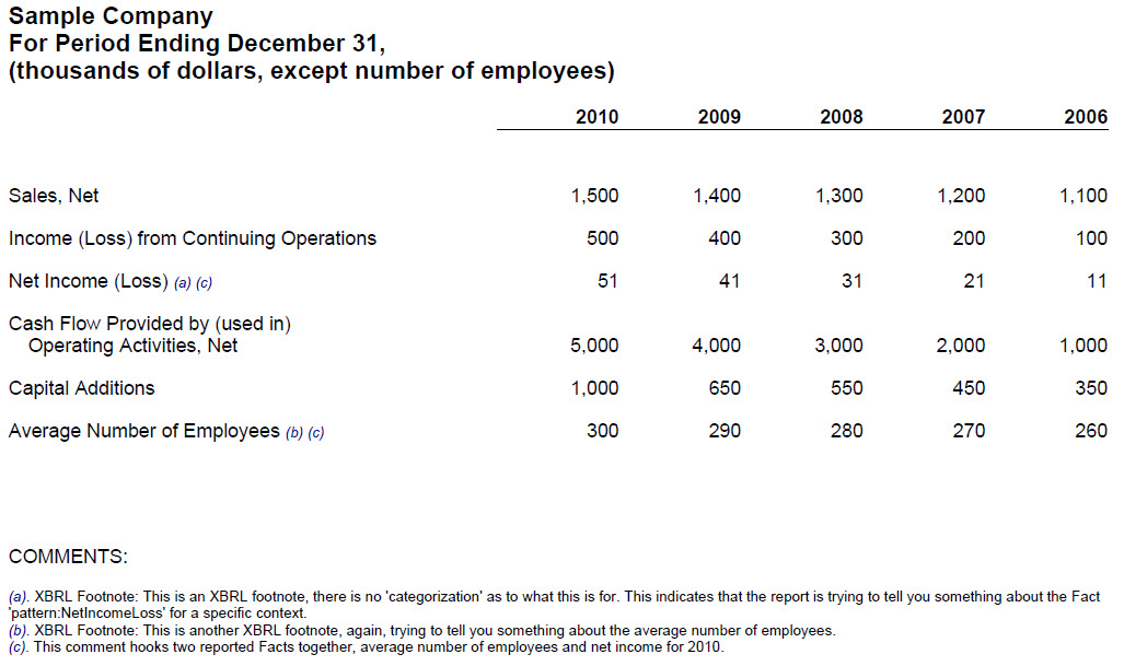 | A specific type of comment or footnote which explains why a fact has not been reported. Points out that footnotes can be differentiated using roles. |
