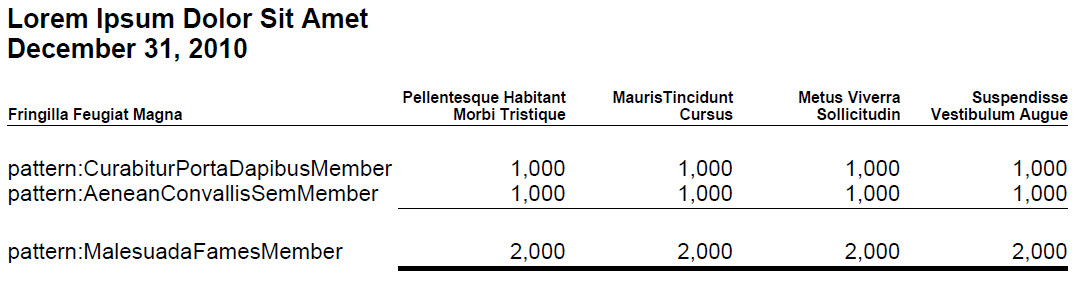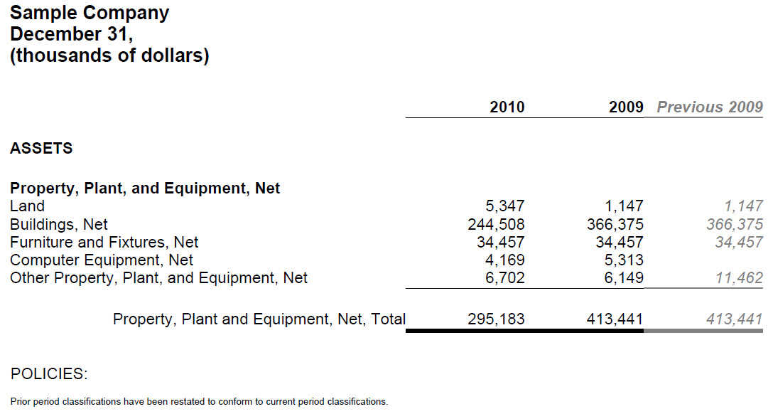 | Financial reporting use case of the reclassification of prior period line items of a report to conform to current period classifications. |